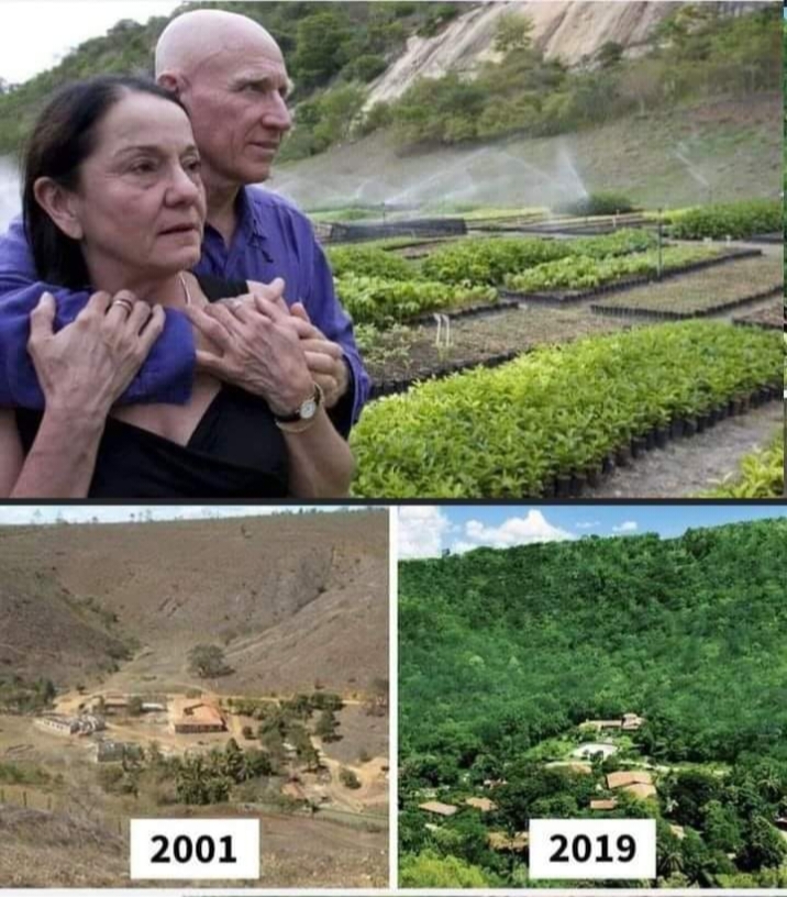 ब्राज़ील: इस जोड़े ने 18 वर्षों में 2 मिलियन पेड़ लगाए, जिससे 172 पक्षी प्रजातियाँ, 33 स्तनधारी, 15 उभयचर, 15 सरीसृप और 293 पौधों की प्रजातियाँ वापस आईं। पूरी दुनिया को उन्हें जानना चाहिए। यह लेलिया वानिक और सेबेस्टियाओ सालगाडो हैं। दंपति ने टेरा इंस्टीट्यूट शुरू करने का फैसला किया, एक छोटा संगठन जिसने 2 मिलियन पौधे लगाए और जंगल को पुनर्जीवित किया।