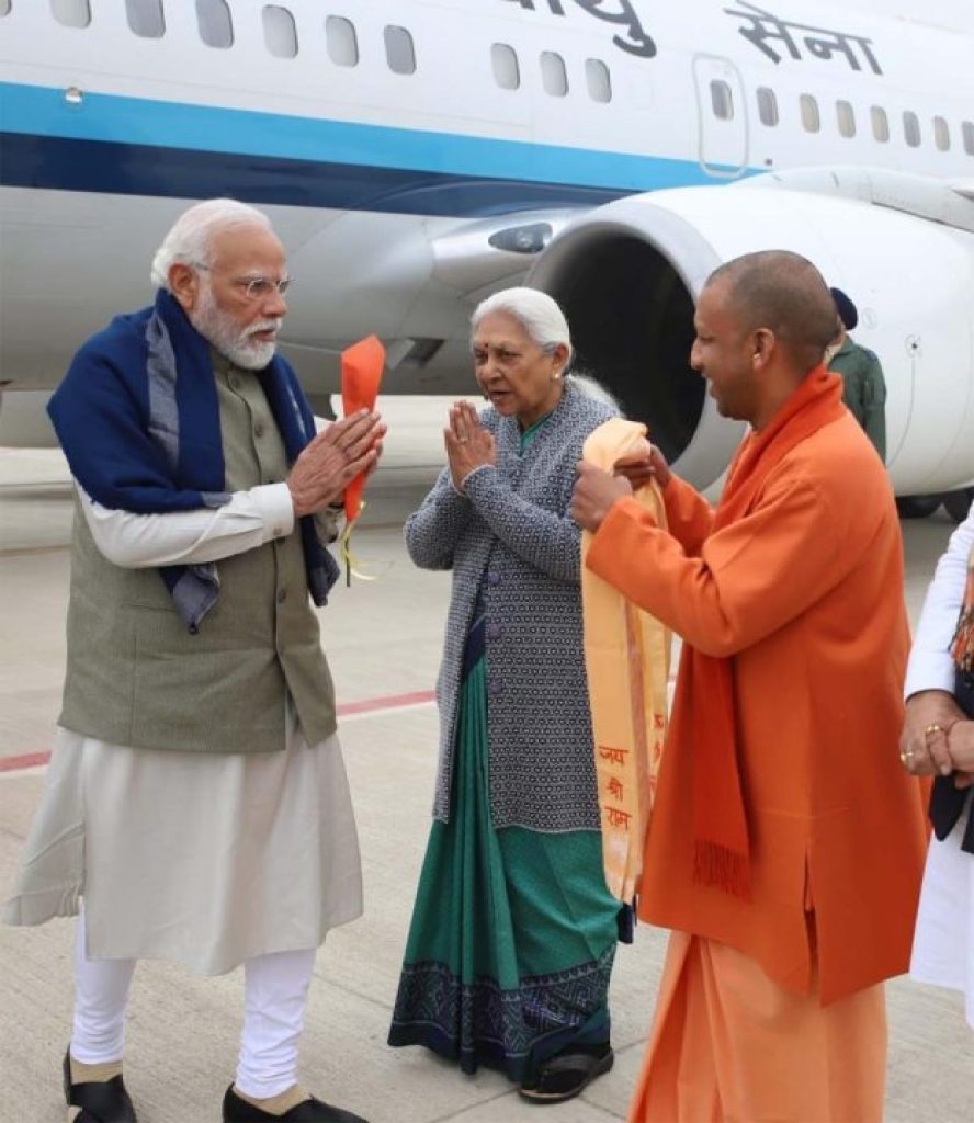 अयोध्या: प्रधानमंत्री नरेंद्र मोदी अयोध्या नगरी पहुंच चुके हैं. कुछ देर पहले ही उनका विमान यहां लैंड कर चुका है. यहां पहुंचने पर यूपी के मुख्यमंत्री योगी आदित्यनाथ और राज्यपाल आनंदीबेन पटेल ने उनका स्वागत किया. कुछ देर में उनका काफिला आगे बढ़ेगा और उनके स्वागत के लिए यहां सड़कों पर बड़ी संख्या में लोग खड़े हुए हैं.