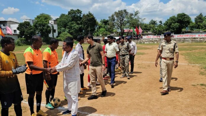 ज्ञात हो कि नारायणपुर पुलिस अधीक्षक पुष्कर शर्मा के विशेष पहल से क्षेत्र के युवाओं में सकारात्मक सोंच एवं खेल भावना को बढ़ावा देने के उद्देश्य से 01 सितम्बर 2023 से जिले के अनुभाग नारायणपुर, बेनूर, छोटेडोंगर, सोनपुर एवं कुकड़ाझोर क्षेत्र में फुटबाल प्रतियोगिता का लीग मैच आयोजित किया गया।