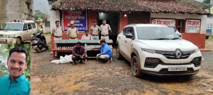मोपका पुलिस के मुताबिक, सोमवार की देर रात देसी शराब की तस्करी की सूचना मिली थी. इस पर पुलिस की टीम ने मोपका चौक पर घेराबंदी की. मुखबिर के बताए अनुसार चिल्हाटी मोड़ की ओर से आ रही रेनाल्ट कार को पुलिस ने रोका और कार सवार बलराम यादव निवासी कंसा चौक टिकरापारा और नवीन बोले उर्फ भज्जी निवासी दयालबंद गुरुनानक स्कूल के सामने को पकड़ा.