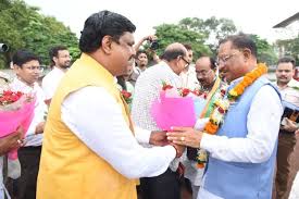 रायपुर : मुख्यमंत्री विष्णुदेव साय और उपमुख्यमंत्री अरूण साव के दुर्ग आगमन पर पुलिस ग्राउण्ड हेलीपेड स्थल पर जनप्रतिनिधियों और जिला प्रशासन के अधिकारियों ने पुष्प गुच्छ भेंट कर आत्मीय स्वागत किया।