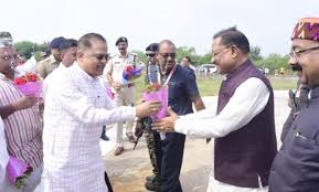 Chief Minister Vishnudev Sai welcomed at the helipad on reaching Bilaspur