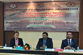 रायपुर : भारत सरकार के पर्यावरण, वन एवं जलवायु परिवर्तन मंत्रालय, वन्यजीव अपराध नियंत्रण ब्यूरो, मध्य क्षेत्र मुख्यालय भोपाल, छत्तीसगढ़ वन विभाग तथा विभिन्न राज्यों के वन विभागों द्वारा आज नवा रायपुर के अरण्य भवन में वन्यजीव अपराध रोकथाम पर अन्तर एजेंसी की बैठक आयोजित की गई। बैठक में रेलवे, पुलिस, वन विभाग, केंद्रीय एजेंसियों तथा विभिन्न विशेषज्ञ संस्थाओं के अधिकारी शामिल हुए।