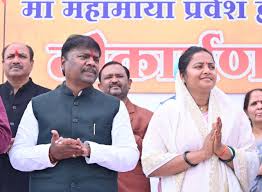 मंत्री लक्ष्मी राजवाड़े माँ महामाया मंदिर के प्रवेश द्वार के लोकार्पण में हुई शामिल