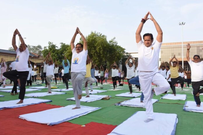 रायपुर: आज नवम् अंतर्राष्ट्रीय योग दिवस के उपलक्ष्य में बहुत ही भव्य कार्यक्रम जोरा मैदान, रायपुर में आयोजित किया गया, जिसमें छत्तीसगढ़ प्रदेश के मुखिया मुख्यमंत्री भूपेश बघेल के आव्हान पर लगातार योग दिवस को बढ़ावा दिया जा रहा है। इस अवसर पर संसदीय सचिव एवं विधायक विकास उपाध्याय भी शामिल हुए। विधायक विकास उपाध्याय का भी योग आयोग के सदस्यों द्वारा भव्य स्वागत किया गया। विधायक विकास उपाध्याय ने अंतर्राष्ट्रीय योग दिवस के बारे में बताया कि अंतर्राष्ट्रीय योग दिवस प्रतिवर्ष 21 जून को मनाया जाता है।