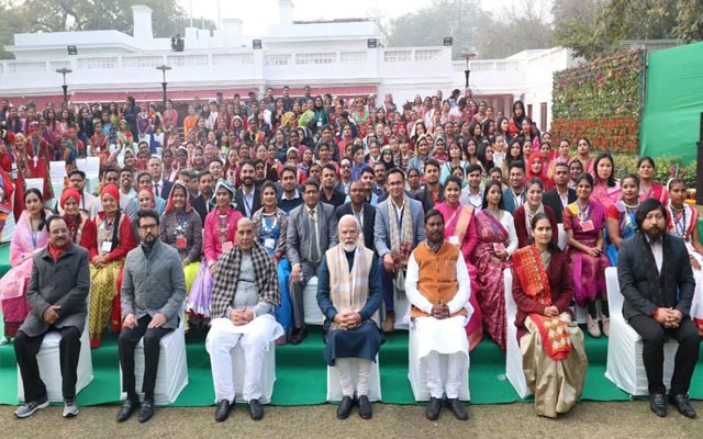 रायपुर: नई दिल्ली में गणतंत्र दिवस परेड से पूर्व 24 जनवरी को प्रधानमंत्री नरेन्द्र मोदी ने विभिन्न प्रदेशों से झांकी के प्रदर्शन के लिए राजधानी आए लोक-कलाकारों को आमंत्रित कर उनसे मुलाकात की और उनका हौसला बढ़ाया। इसी दौरान उन्होंने छत्तीसगढ़ की झांकी ‘‘बस्तर की आदिम जनसंसद: मुरिया दरबार‘‘ में शामिल लोक-कलाकारों से भी मुलाकात की। इन कलाकारों को मुख्यमंत्री विष्णु देव साय ने अपनी शुभकामनाओं के साथ छत्तीसगढ़ से नई दिल्ली रवाना किया था।