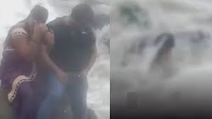 समुद्र में चट्‌टान पर बैठकर फोटो क्लिक करवा कपल लहरों में बह गया...पत्नी की मौत